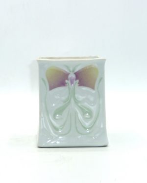 Ivory colored porcelain manufactured by GDA in Limoges, with incised Art Nouveau decoration and a design enameled in celadon and rose