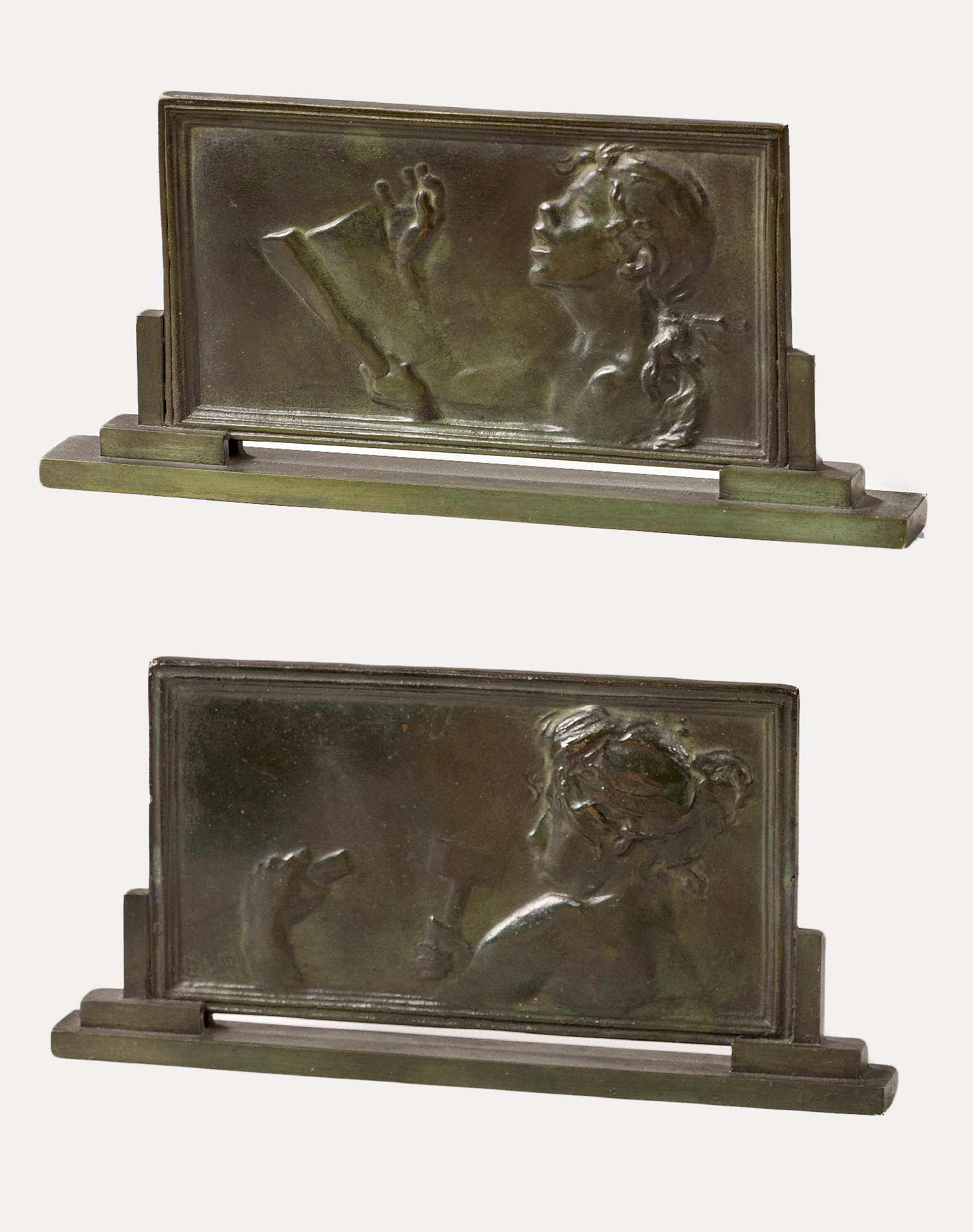Two plaques mounted on a bronze base