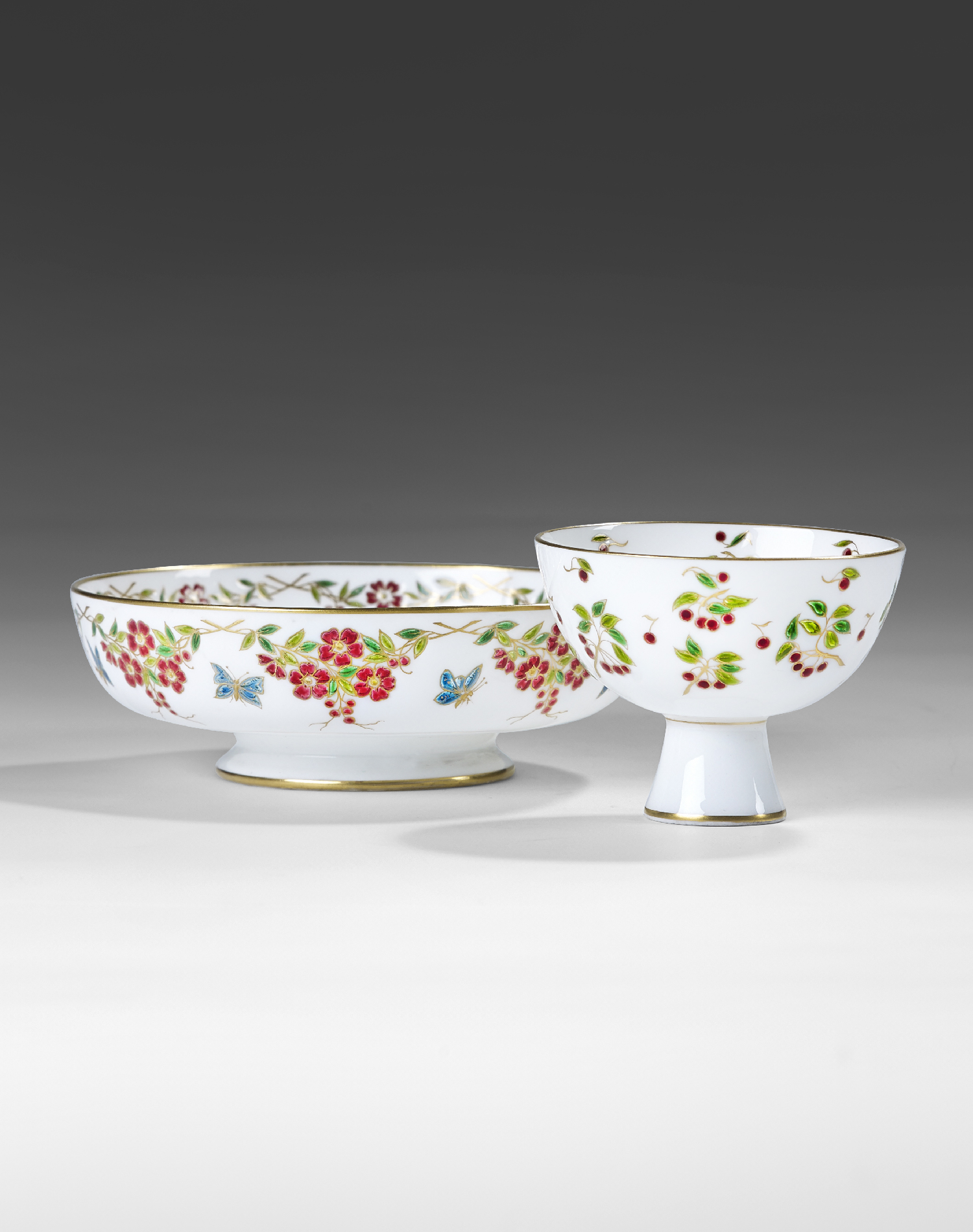 Translucent polychrome enamel on soft white porcelain highlighted with gold