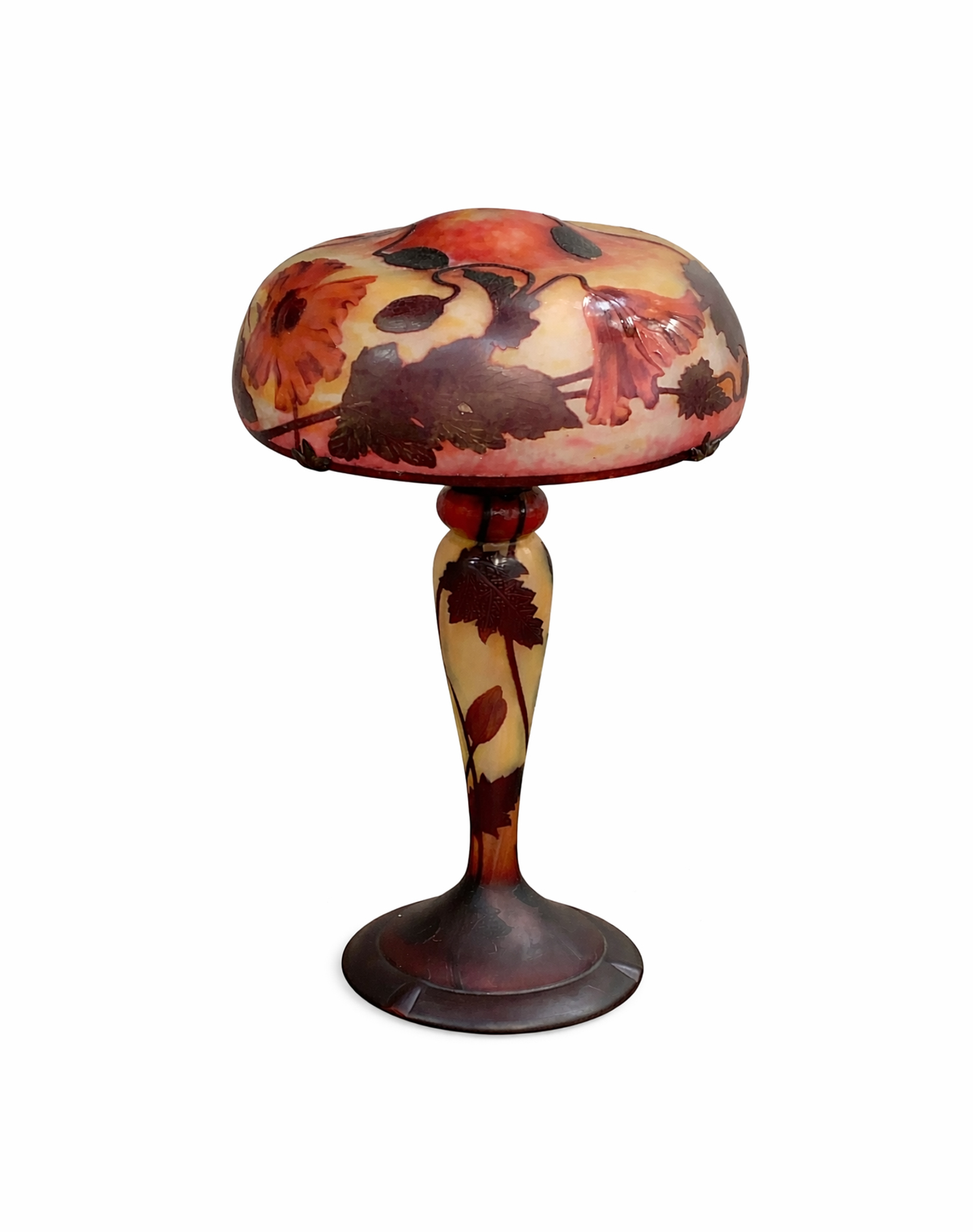 LAMP WITH POPPIES, CIRCA 1900 Glass. Wheel engraving Signed Height: 47 cm.