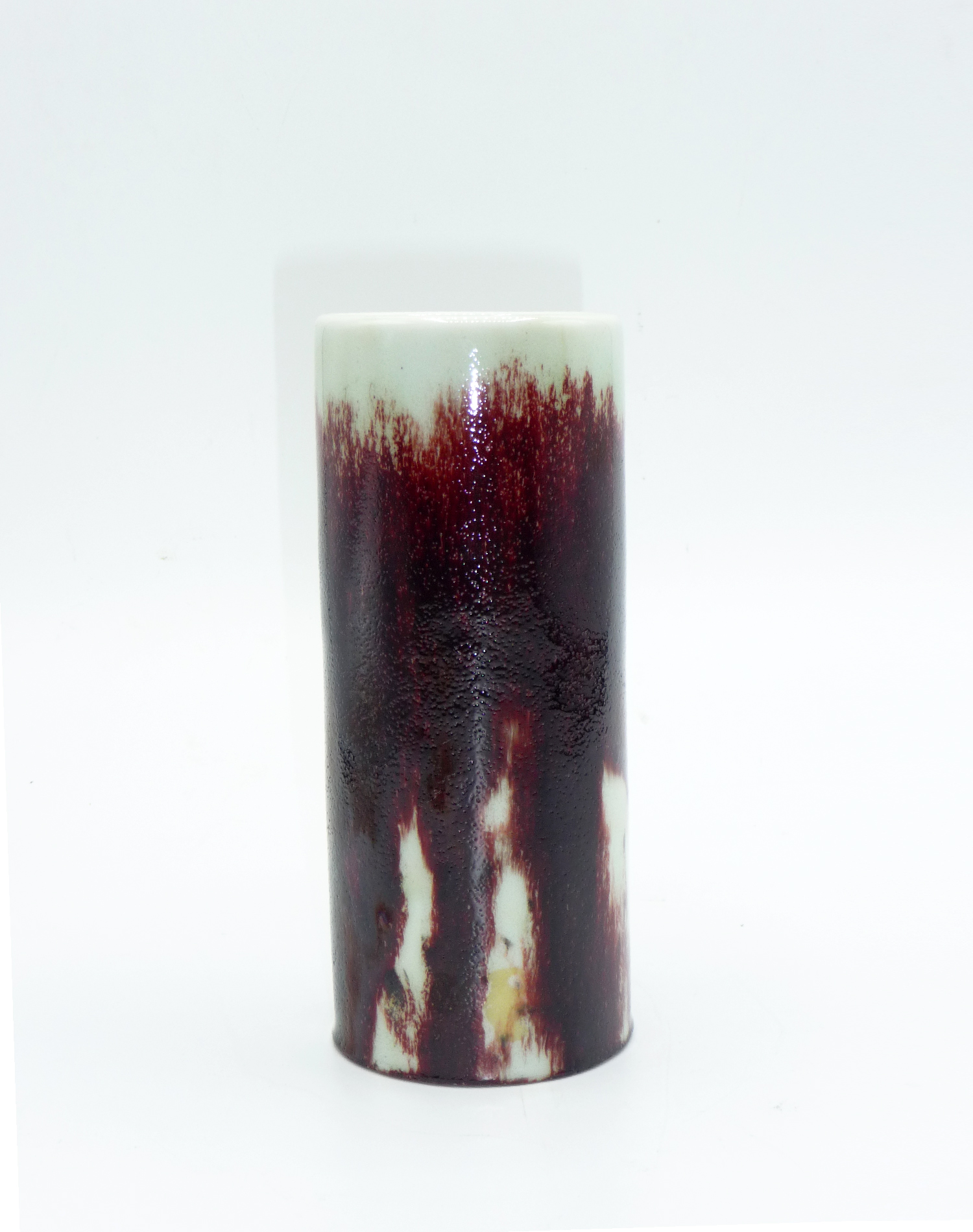 Hard-porcelain, rouge sang-de-boeuf glaze on a milky white background