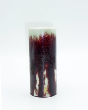 Hard-porcelain, rouge sang-de-boeuf glaze on a milky white background