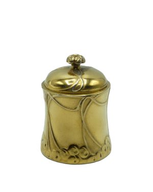 Bronze with a brown patina featuring pine cone decorations in high relief on the sides