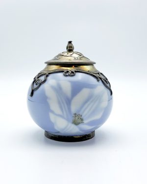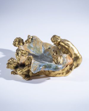 Bowl in iridescent ceramic with gilt bronze mount featuring figures
