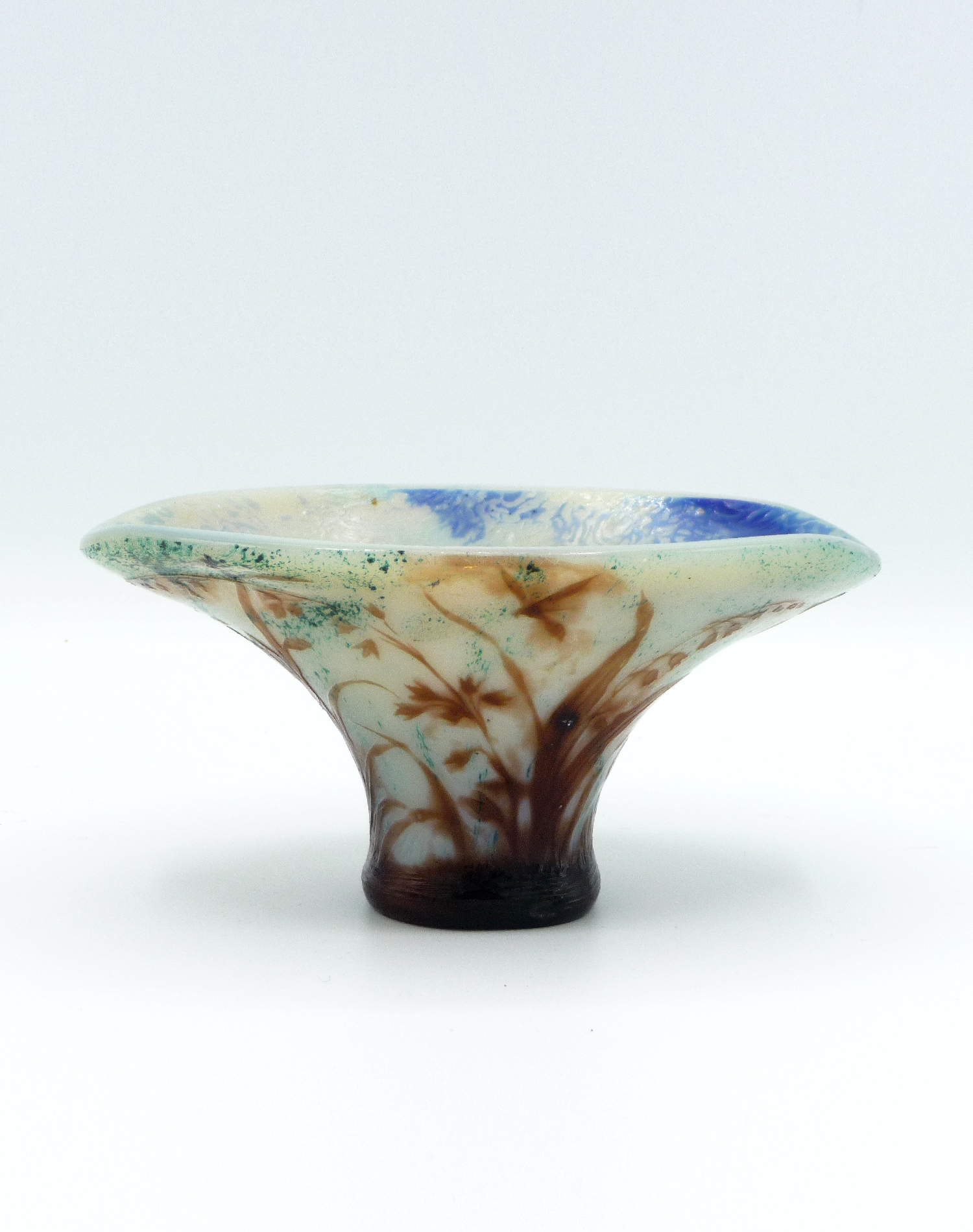 Glass, with a decor of branches on an interlayered background