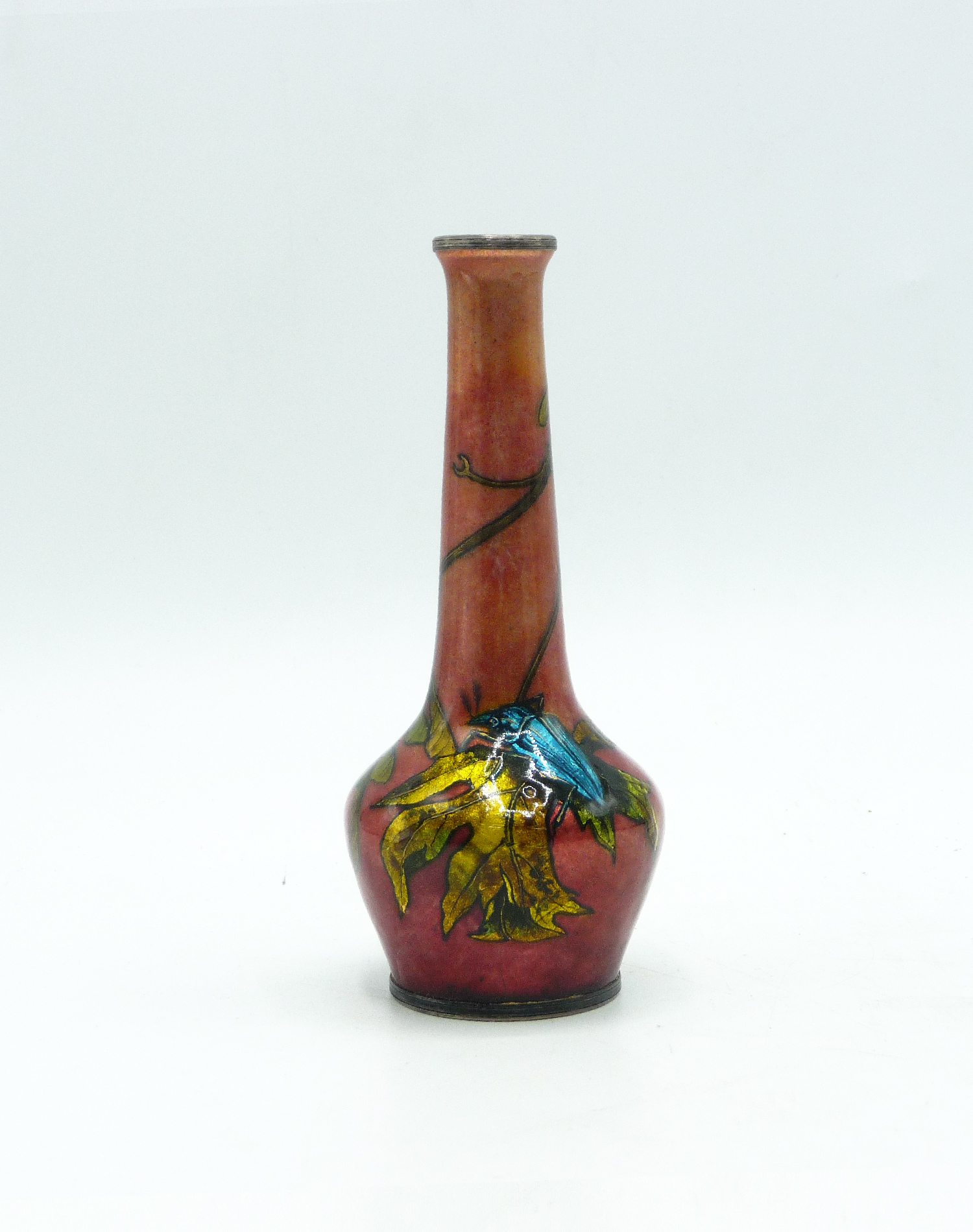 Polychrome enamel on silver, decorated with a beetle on mistletoe branches